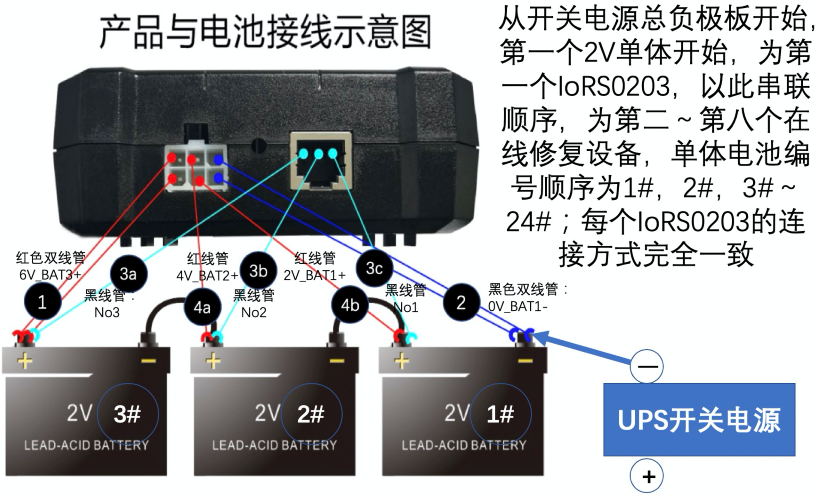 注意:本產(chǎn)品第一個(gè)IoRS-0203從電池組的總負(fù)極開(kāi)始安裝,以此順序。